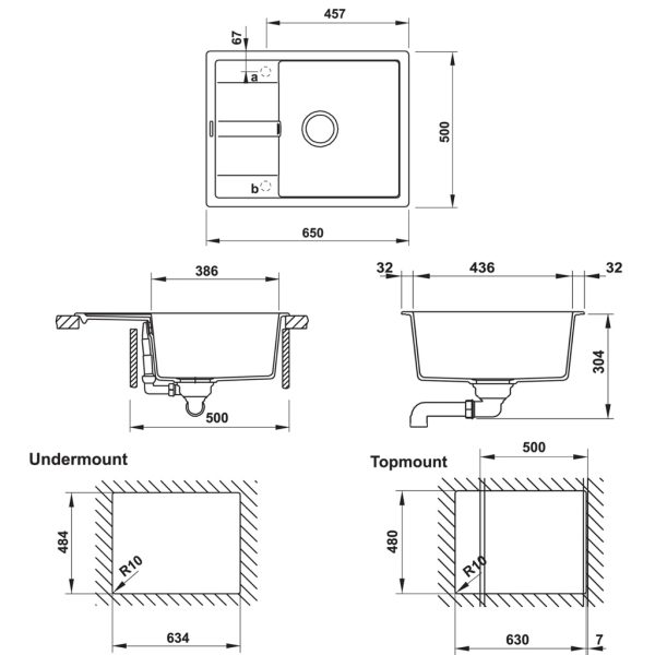 + Lắp âm : D634 x R436mm