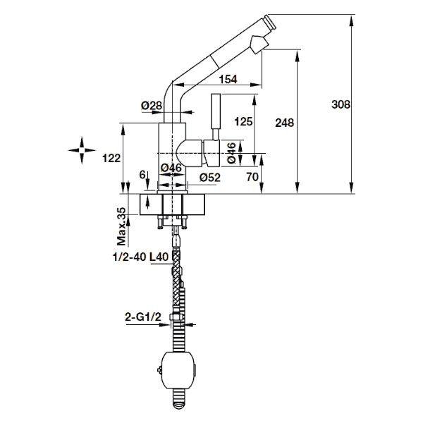 Vòi rửa Hafele HT19-CH1P240 570.51.040