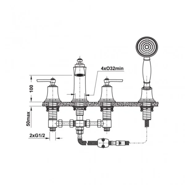 – Bộ trộn dành cho bồn tắm 04 lỗ
