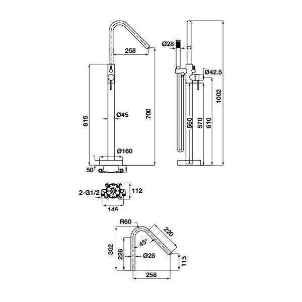 – Bộ trộn tắm đặt sàn cao 1120mm