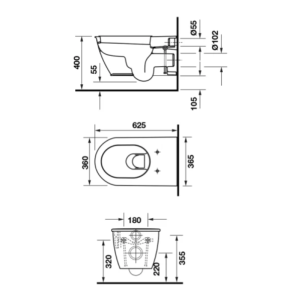 Tính năng Bồn cầu treo tường Duravit 588.45.384: