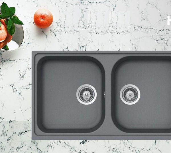 – Chậu rửa đá 02 hố chậu bằng nhau, màu xám