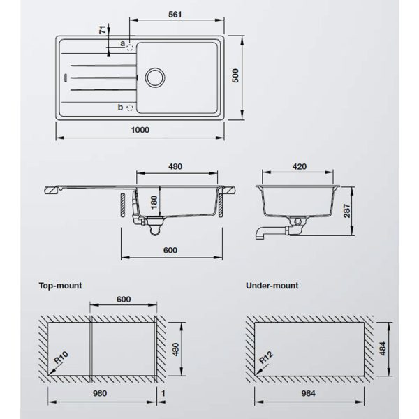 + Lắp âm : D984 x R484mm