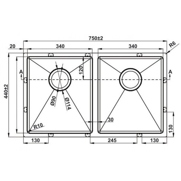 – Chậu rửa chén bát 2 hố chậu có thể lắp âm