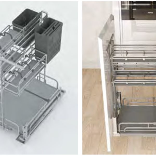 » Các bộ phận rổ kéo với khả năng tùy chỉnh kích thước theo nhu cầu lưu trữ là giải pháp hoàn hảo cho các tủ bếp dưới. Chỉ cần kéo nhẹ, mọi thứ bạn cần cho việc nấu nướng và chuẩn bị cho bữa cơm gia đình sẽ xuất hiện ngay trong tầm tay
