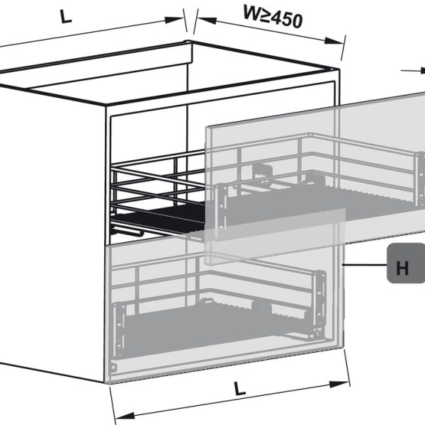 – Dành cho tủ bếp dưới, phiên bản ray và giá gắn cửa tủ