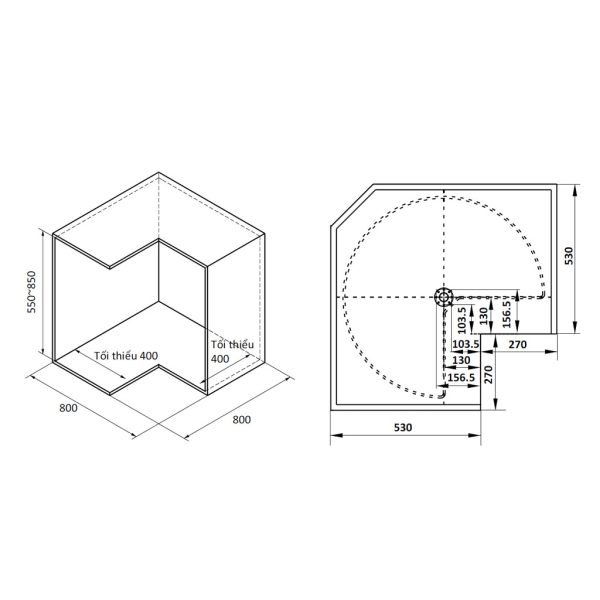 – Chiều sâu lọt lòng tối thiểu : 400mm
