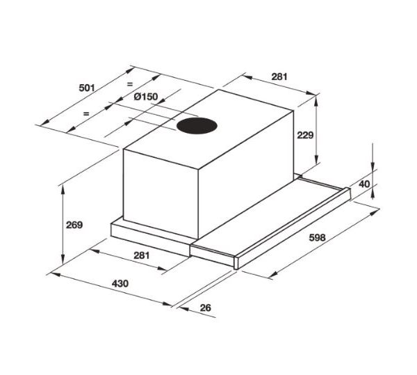 – Kích thước sản phẩm : W598 x D435 x H180 mm