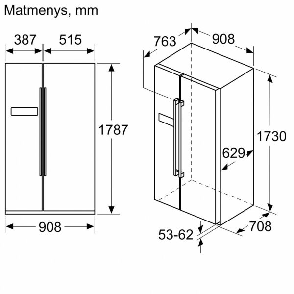 – Kích thước tủ lạnh (CXRxS): 178.7 cm x 90.8 cm x 70.7 cm
